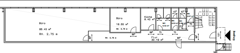 Beim Betreten des Objekts gelangt man zunächst durch einen kurzen Eingangsflur, aus welchem alle weiteren Räume erreicht werden.